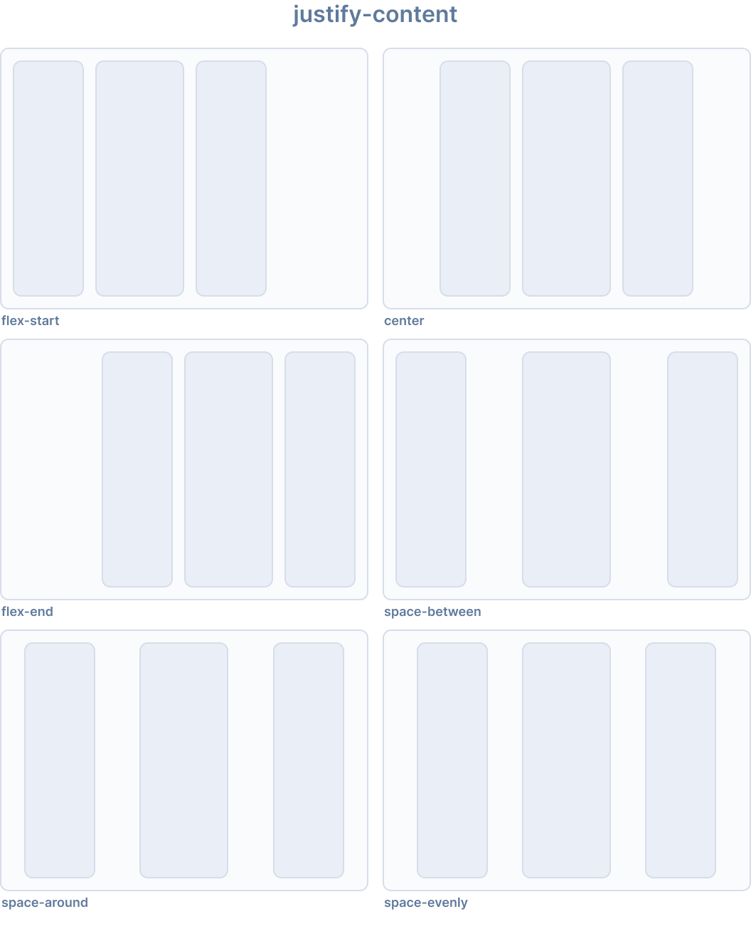 以下の表は、デフォルトの動作を示しています。{property}は次のいずれかです:justify-content、align-content、align-items、flex、またはflex-wrap。{modifier}は上記で説明されている対応する値です。